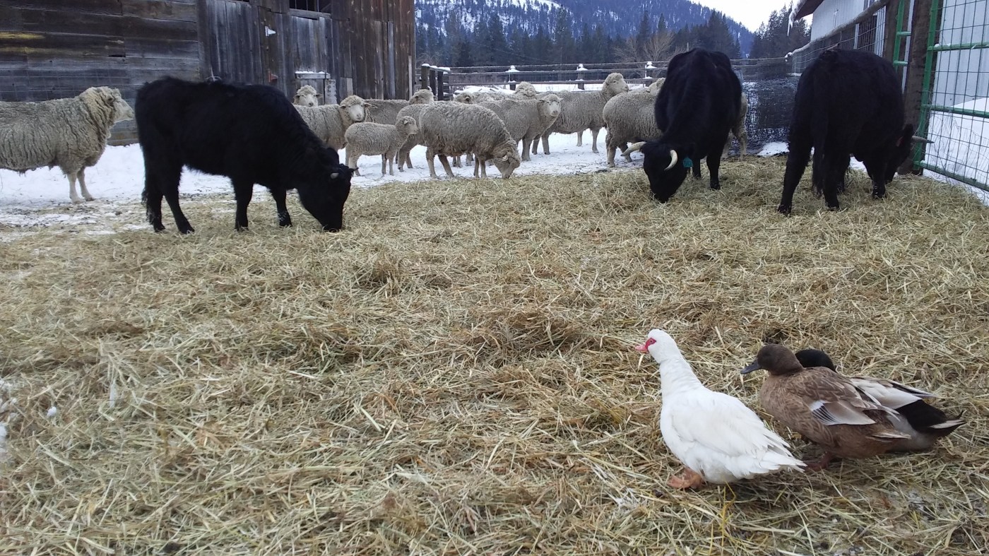 Dad was still dubious about buying cows in the middle of February, but he could tell we were excited and decided to go take a look at them. Dad thought he might get some work done that day, but “in Colville” meant 1 hour away from any town! I started off driving, but Dad took the wheel because he was getting nauseous… it was a good thing he did too, because their driveway was a mile long skating rink! Sliding up to the top of the driveway it branched off 3 ways, and Mom was just getting a lecture on how to ask directions when we saw someone waving on our left and we turned in.