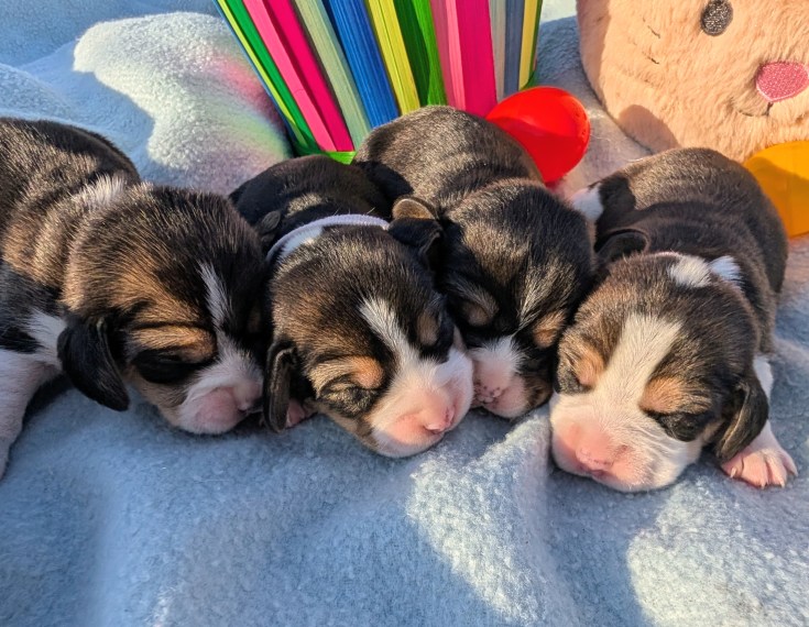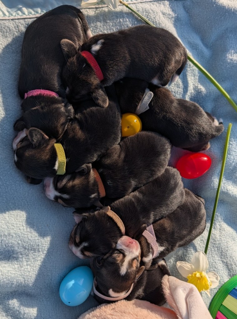 These pups will be ready to go home at 8 weeks on May 29th –Contact Jenni to place a reservation.