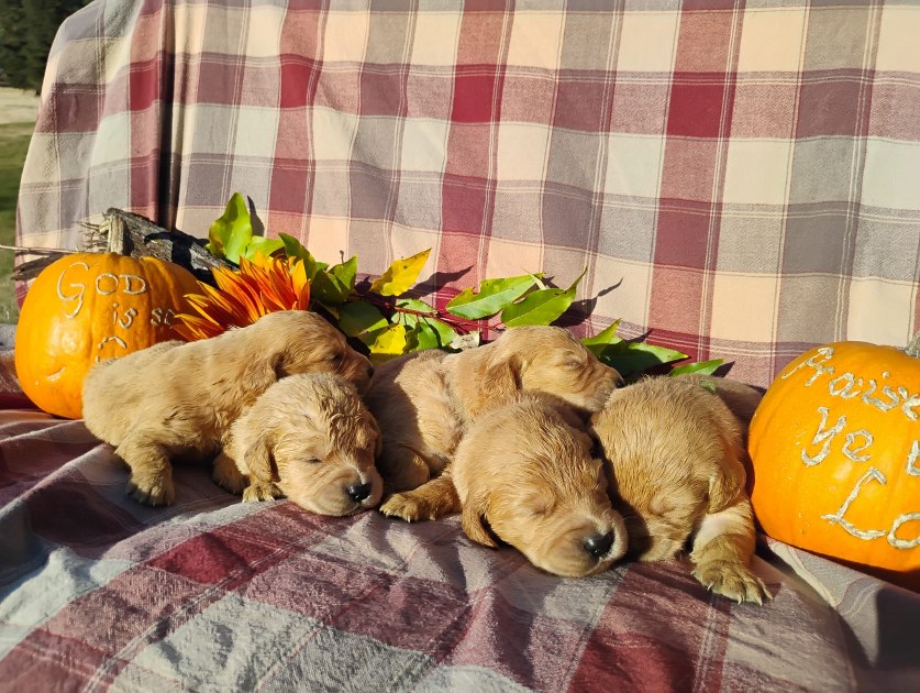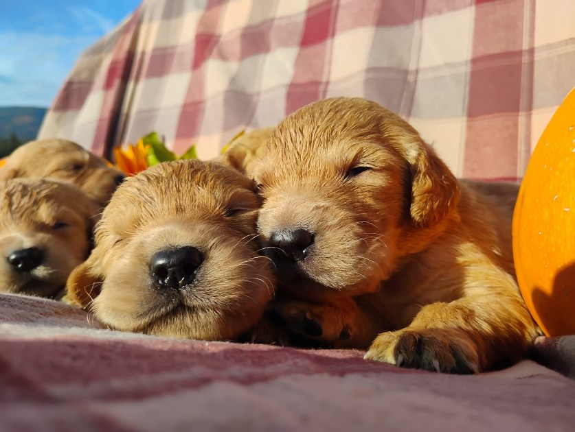 Our beautiful litter of Red-gold Retriever puppies was born October 1st!