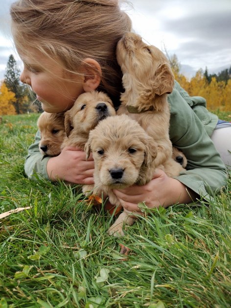Well mannered beautiful Family dogs are our priority, Our pups are handled daily, exposed to kids, animals, water, other dogs and these pups have gone thru ENS (Early Neurological Stimulation) this is proven to truly help to round out and develop puppy social skills and prepare them for anything they will encounter in life from a very early age! You can read more about ENS here